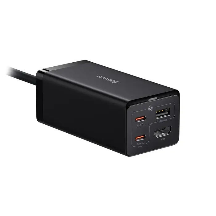 This charger combines the functions of a HUB and a fast charger into one with maximum 67W of total output , featuring a new type of semiconductor material called GaN (Gallium nitride). It is small-sized with various output ports (including 2 Type-C ports, 1 USB port and 1 HDMI port). It is multi-protocol certified, including QC4+, PD3.0, QC3.0, QC2.0, PPS, SCP, FCP, AFC, PE+ and more.